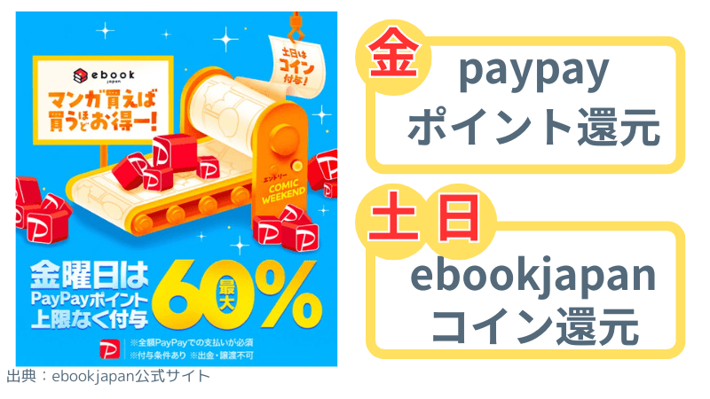 ebookjapanは毎週末のキャンペーン(コミックウィークエンド)も人気です。