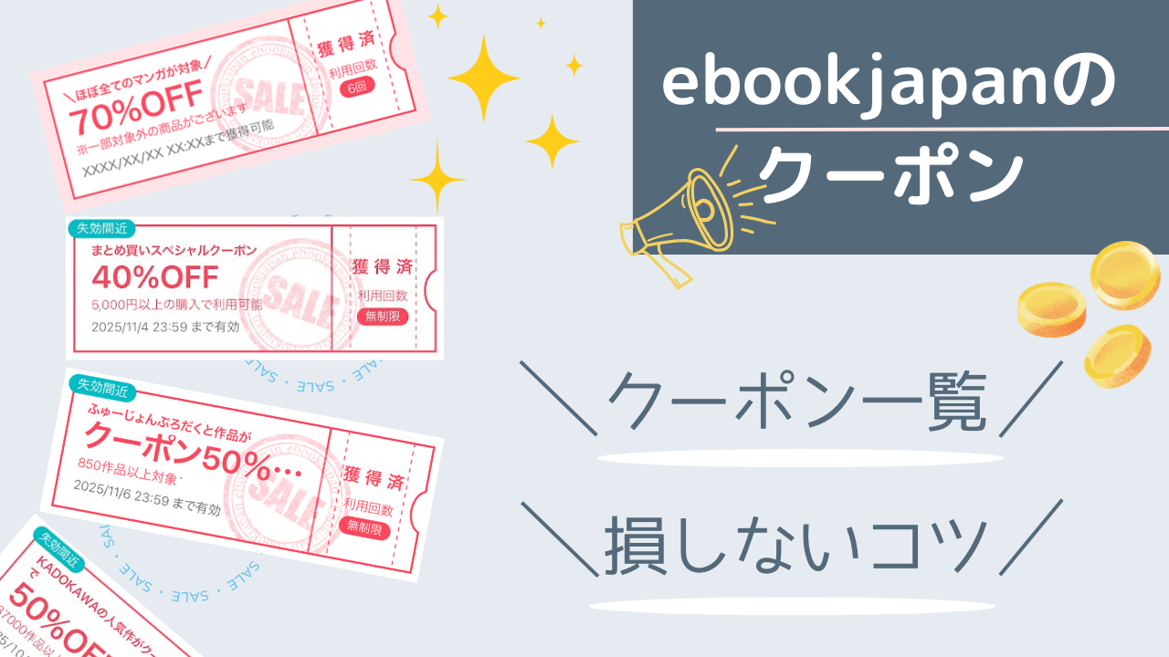 ebookjapanで活用できるクーポンの種類と使い方のコツをご紹介しました。
