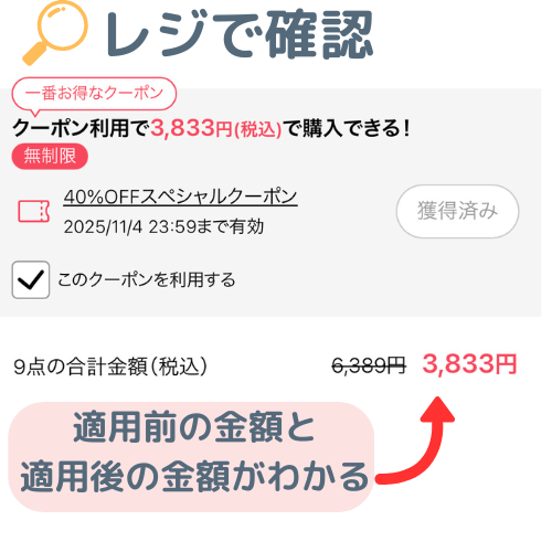 クーポンの獲得、適用はかなりわかりやすくて使いやすいです。